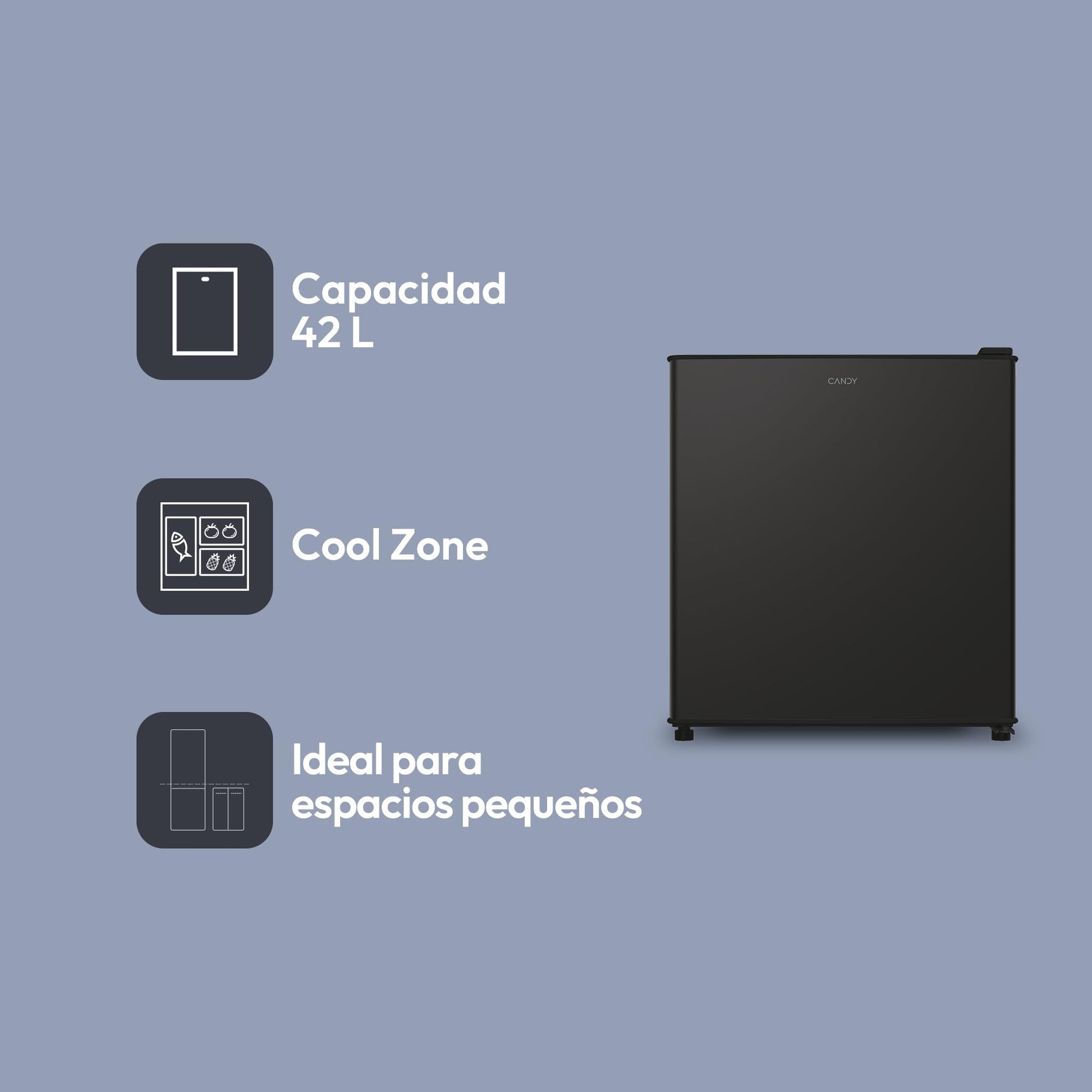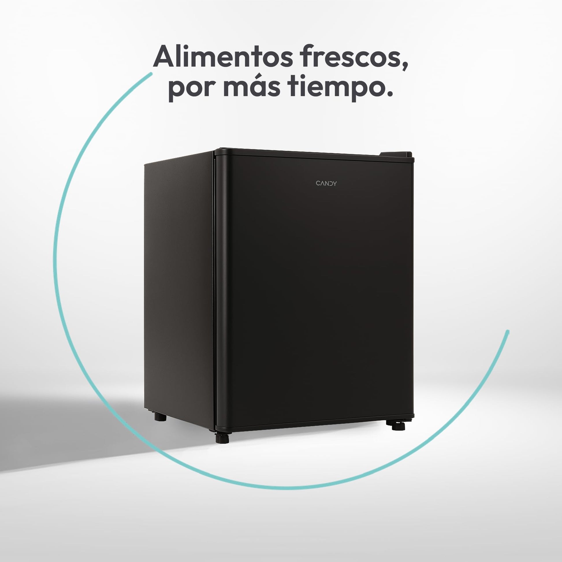 El Candy CHASD4351EBC es un mini frigorífico compacto con 43 litros de capacidad, perfecto para almacenar bebidas, snacks y pequeños alimentos. Su diseño elegante en negro y iluminación LED interna lo convierten en una opción funcional y moderna.