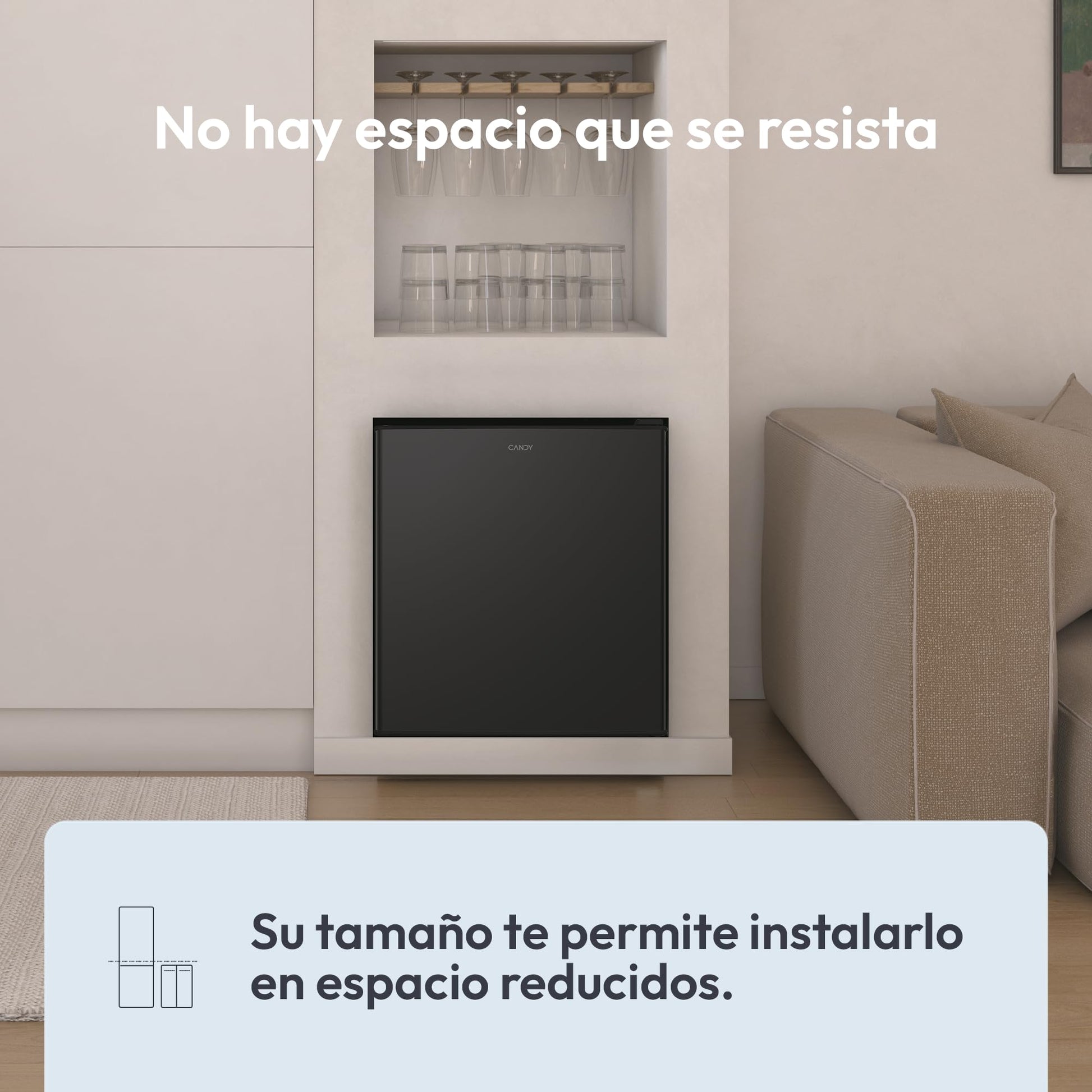 Frigorífico Candy CHASD4351EBC – Mini Bar 43L con Iluminación LED, Estantes en la Puerta y Control Mecánico, Negro