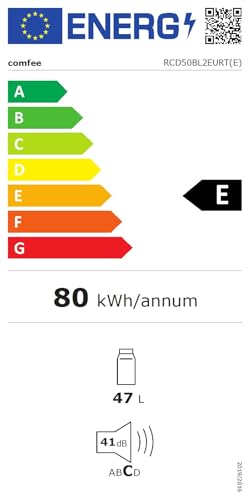 El Comfee’ RCD50BL2EURT(E) combina un diseño retro y compacto con un rendimiento eficiente. Su capacidad de 47 litros, junto con un compartimento de enfriamiento rápido (0°C a -2°C), lo hace ideal para bebidas y alimentos pequeños.