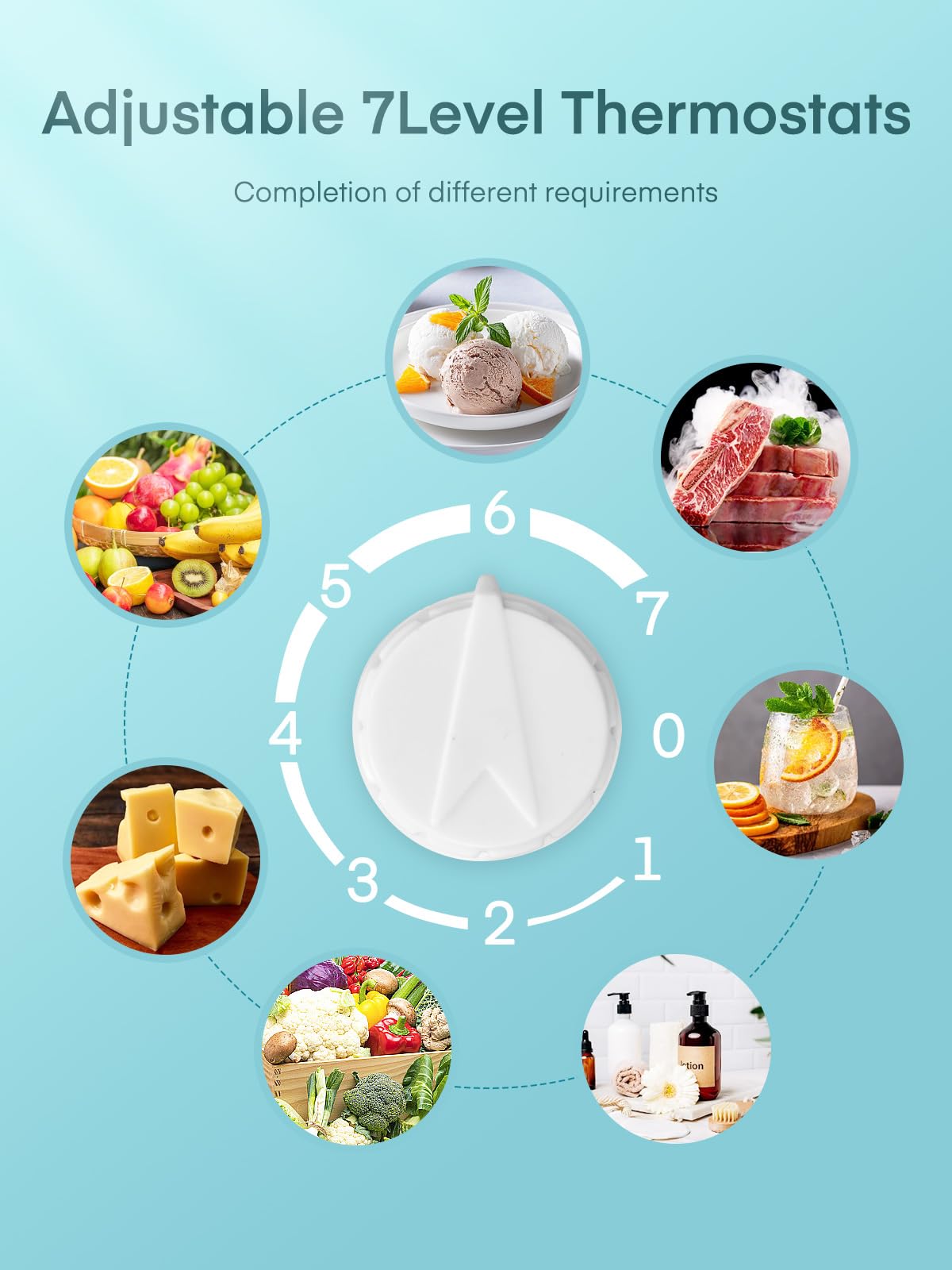 Gracias a su puerta reversible y patas ajustables, puedes colocarlo donde prefieras, con una instalación fácil y adaptable. La temperatura se regula en 7 niveles, permitiendo conservar correctamente tanto bebidas como alimentos según tus necesidades. Además, su sistema de refrigeración proporciona un almacenamiento súper frío de hasta 2 litros.