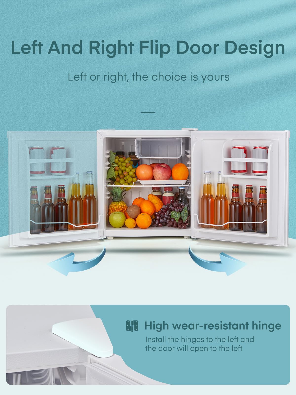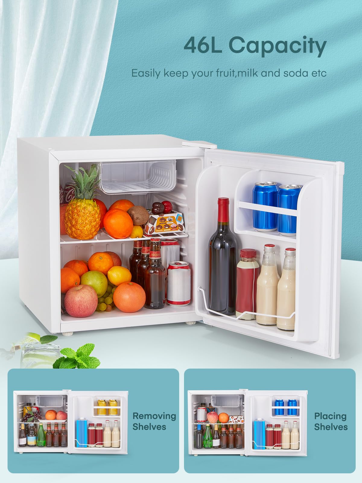 Mini Nevera FOHERE 46L – Bajo Consumo, Silenciosa, Puerta Reversible, Termostato Ajustable, Color Blanco