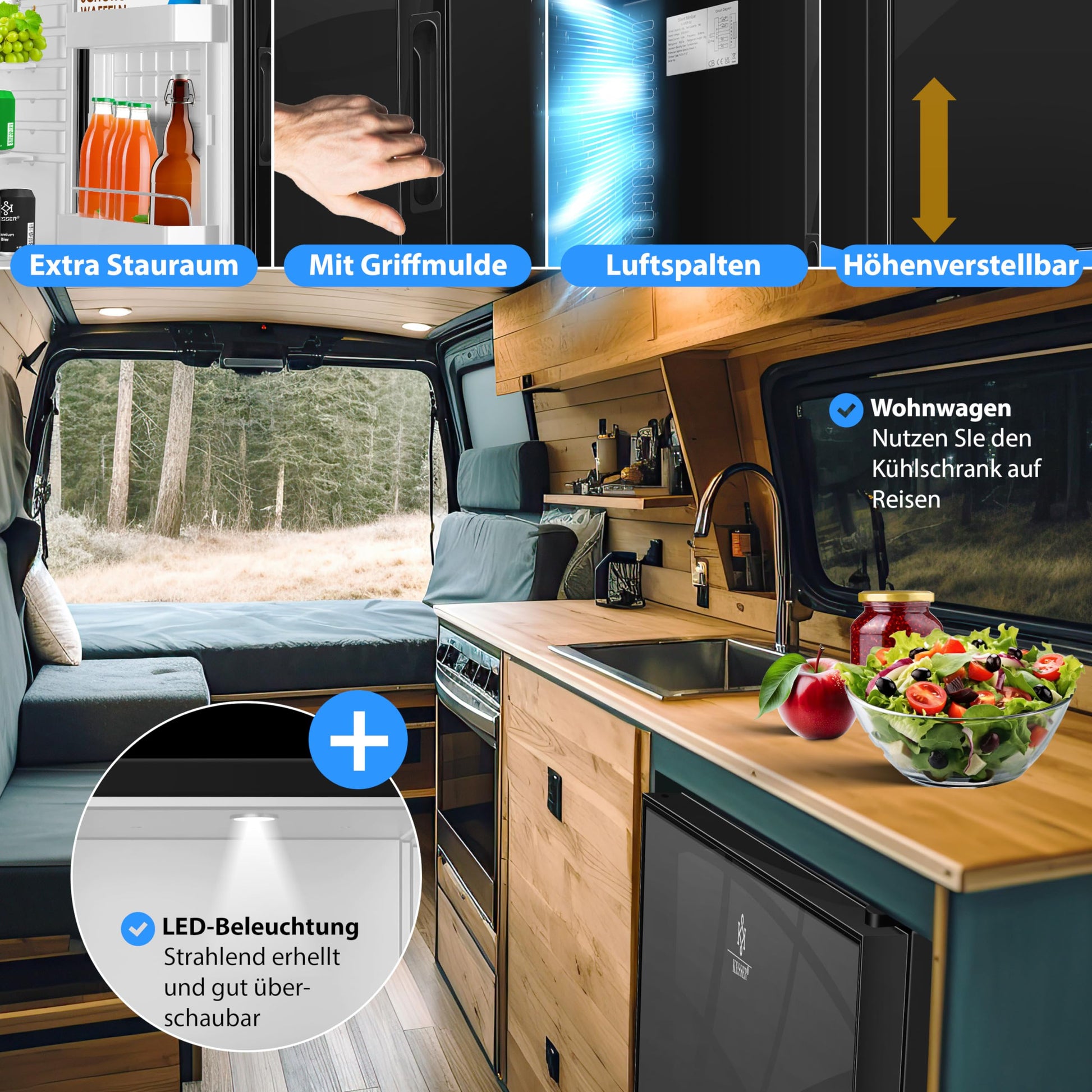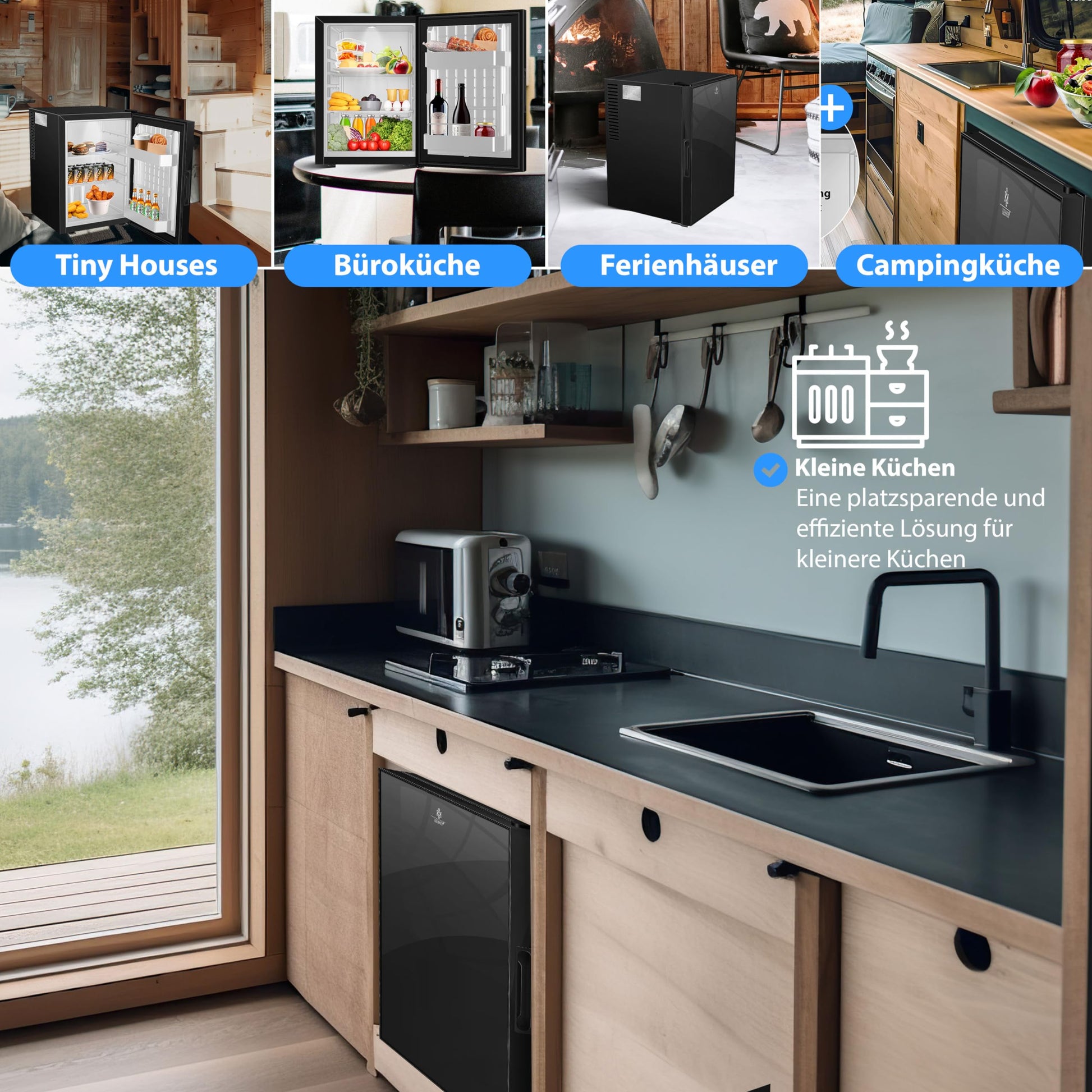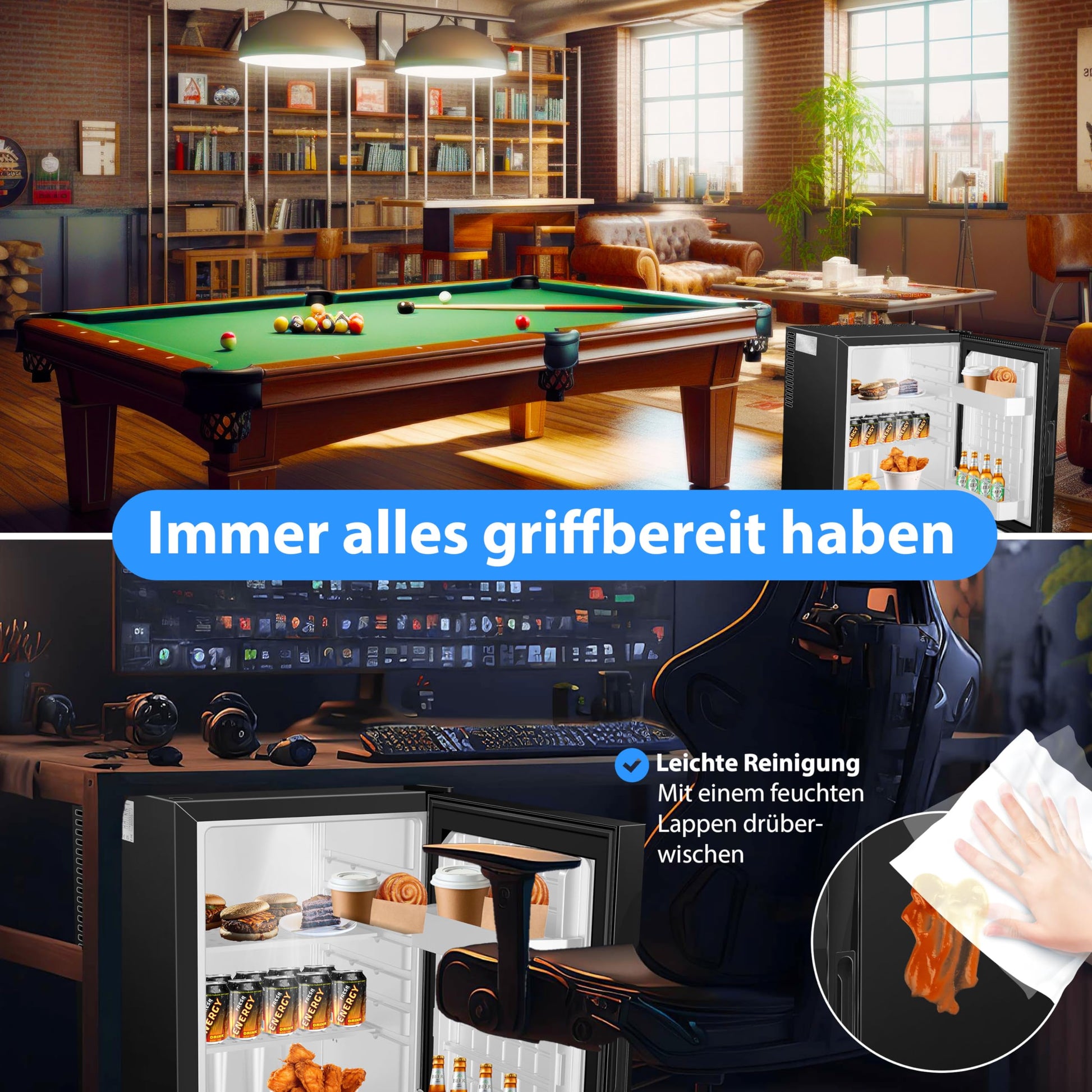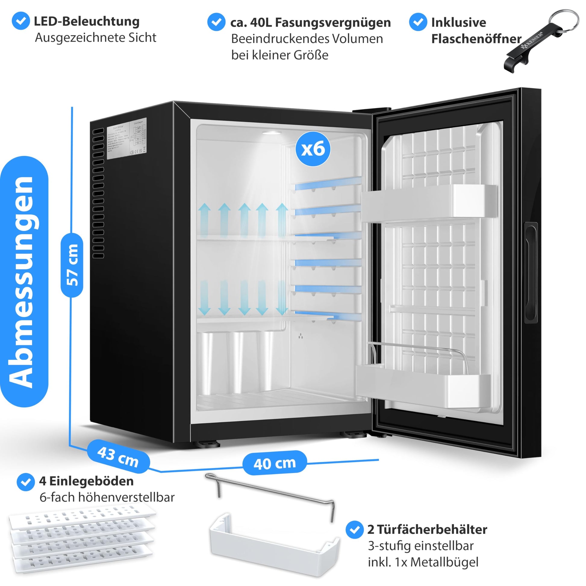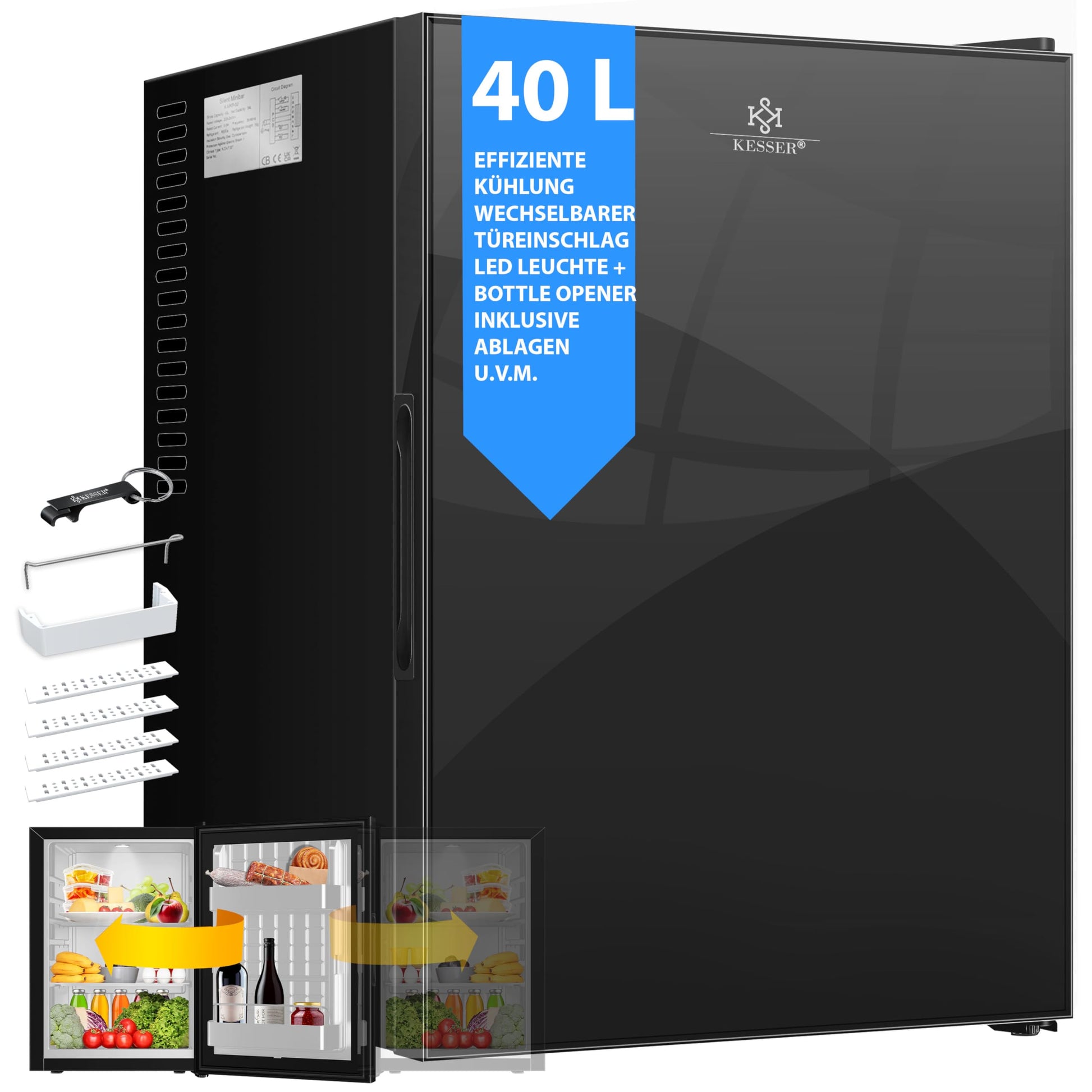KESSER® Mini Frigorífico 40L – Puerta de Cristal, Silencioso 22dB, Termostato, Cerradura con Llave, Iluminación LED, Negro
