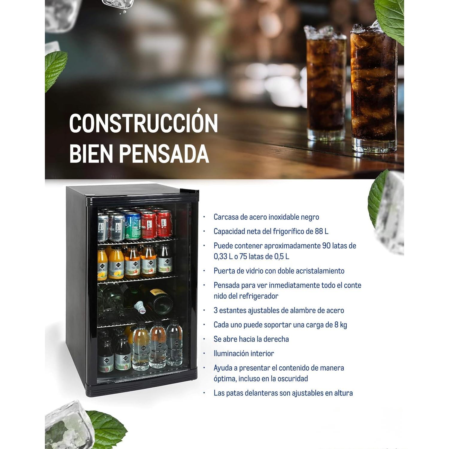 Mini Frigorífico Profesional con Puerta de Cristal – 88 L, Negro, con Estantes Ajustables